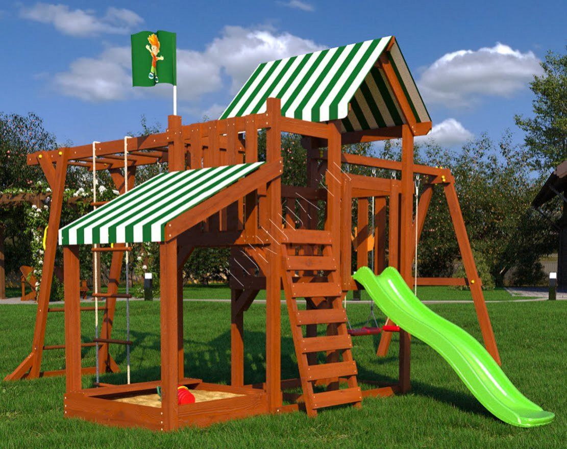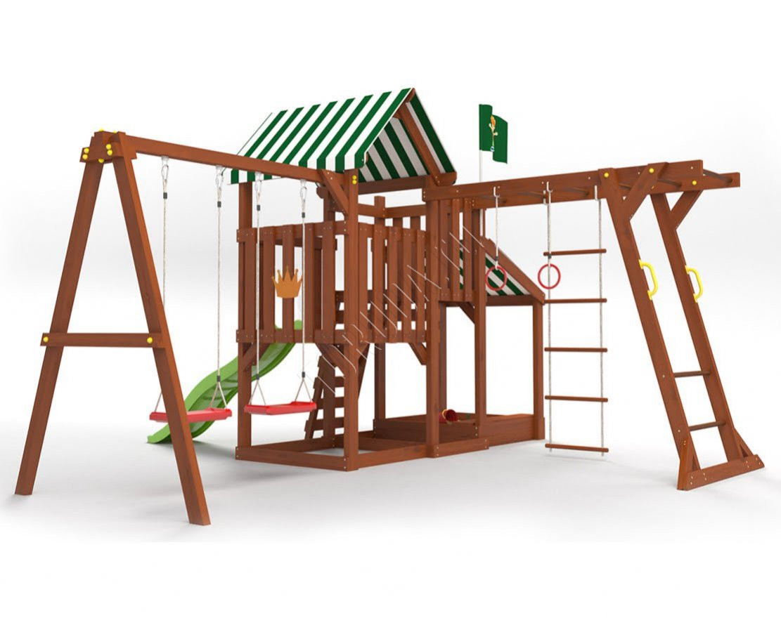 Площадка Борге 4 Люкс обладает довольно широким функционалом (который по желанию можно легко расширить). Детская площадка предназначена для дачи, коттеджа.