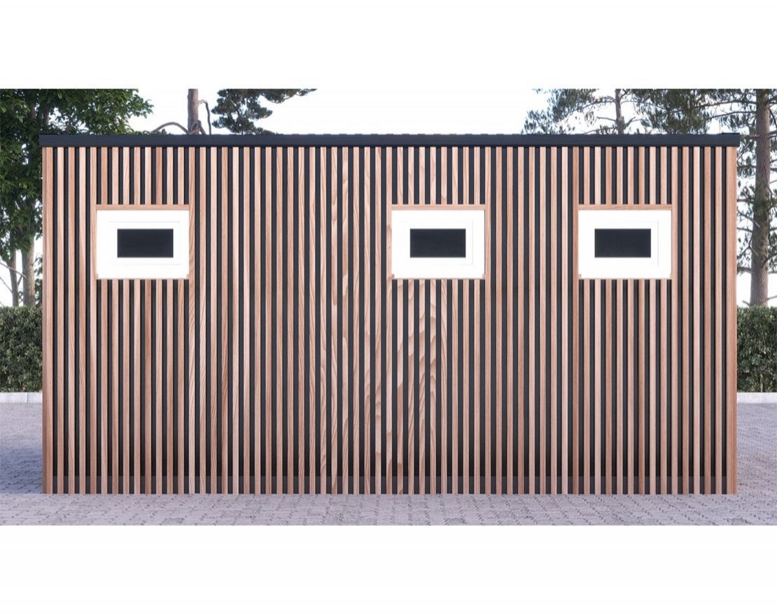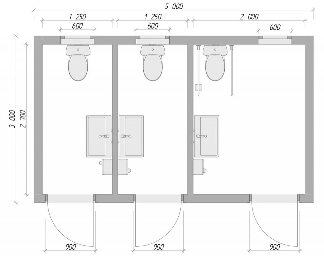 Туалетный модуль с отделениями для всех групп населения, в т.ч. для МГН (маломобильных групп населения). Предназначен для благоустройства городской среды.